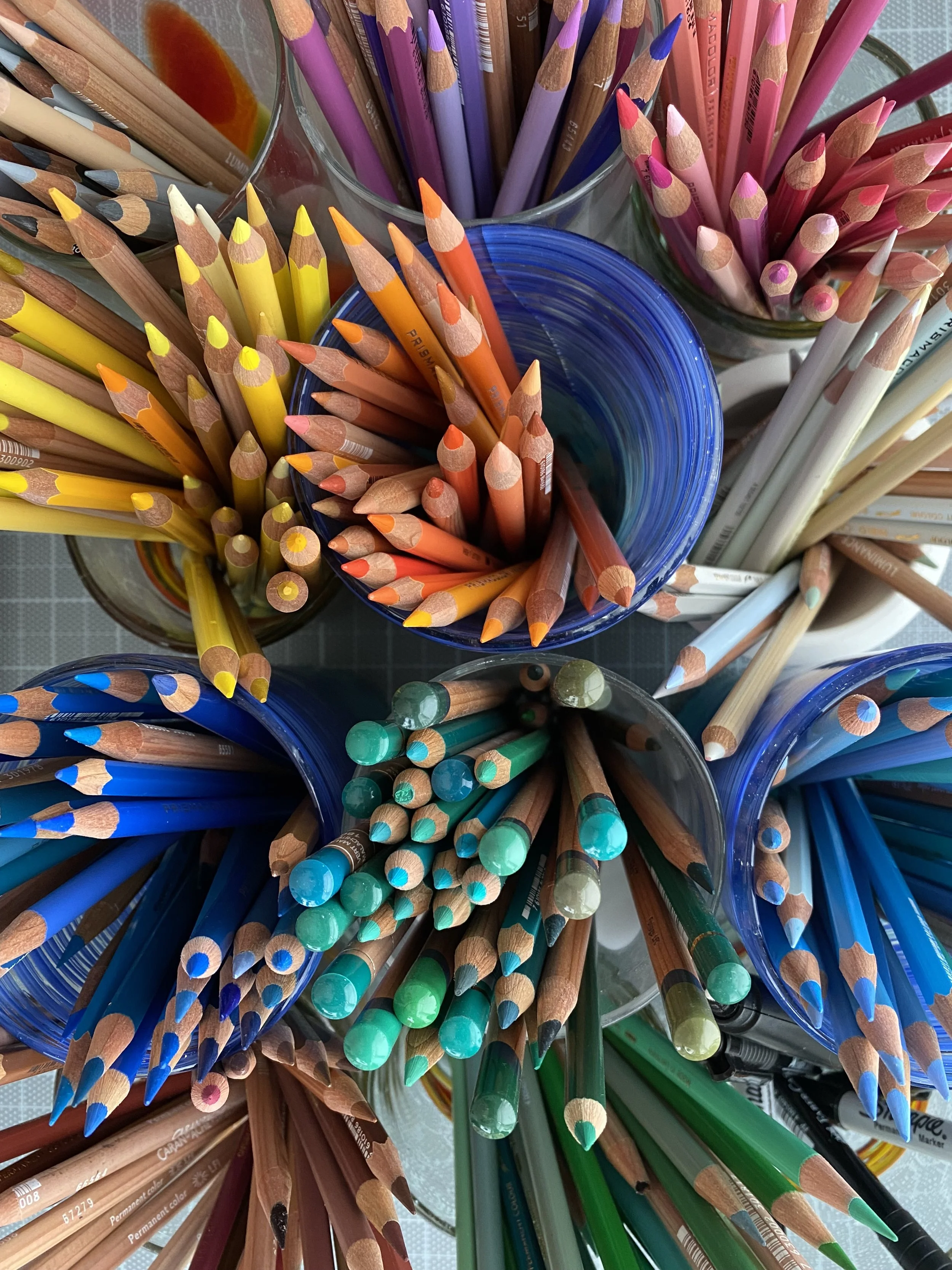9x9 inches, Colored Pencil on Illustration Board, framed (unless noted).